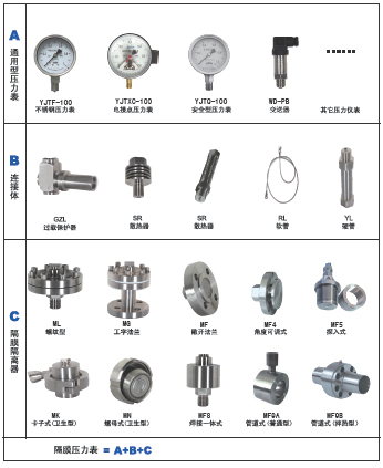 隔膜压力表主要应用于石油化工、制碱、化纤、制药、食品等工艺流程中,它是由通用型压力表与连接体和隔膜隔离器组成在测量介质是强腐蚀、高温、高粘度、易结晶、易凝固、有固体浮游物的情况下使用。